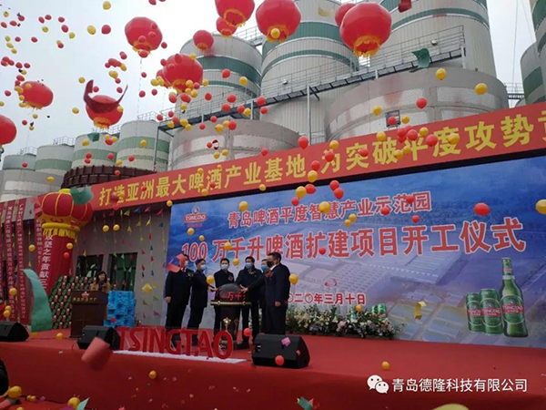 随着疫情防控的持续好转,青岛啤酒集团的各个重点项目的已经陆续开工,为企业、为这座城市注入了一针强心剂,充分体现出一个企业在国家关键节点和困难时刻,不忘初心勇于担当的高尚品格。我们青岛德隆也倍受感染和鼓舞上下齐心,时刻紧随青啤集团的发展步伐,在"强力推进新旧功能转换, 快速起势高质量发展"扩建项目中,承担参与了啤酒包装设备、自动高速贴标机、排序机、高速码垛机、高速卸瓶垛机和智慧物流等多个环节的建设,持续为青岛啤酒集团打造亚洲啤酒产业基地贡献力量。