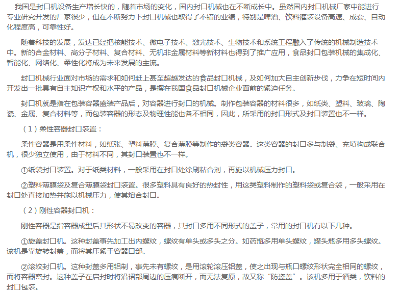 我国封口机械行业发展探究