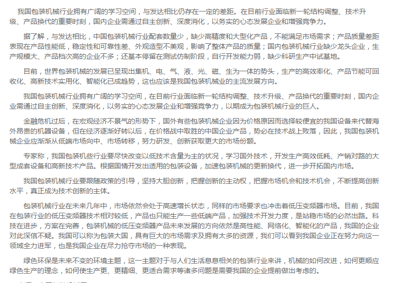 跟随政策引导包装机械行业大胆创新